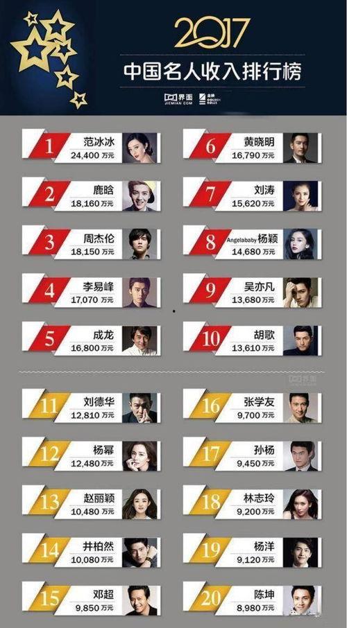 那么,哪些明星的收入最高呢?以下是一些年收入过亿的明星。
